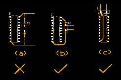 (6)IC器件尽量直接焊在电路板上,少用IC座。