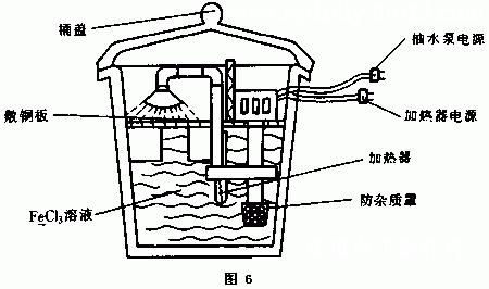 (5)首先在桶中按比例配制FeCl3溶液12.5kg左右 然后按图5所示顺序装配即成。