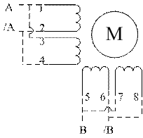 和3相连,2和4相连,分别接A和/A;5和7相连,6和8相连,分别接B和/B。