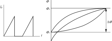 按图6中的磁路工作状态,对磁芯尺寸计算公式推导如下: